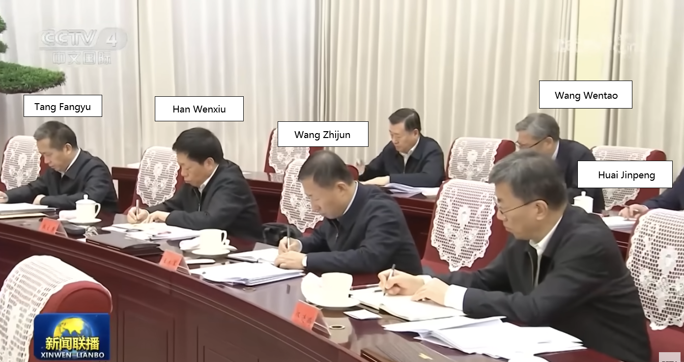 The image above is taken from CCTV footage released on December 8th, 2025, showing the attendees of a Politburo study session to discuss economic work for the upcoming year. From this footage we can see that Tang Fangyu is seated before several officials. These officials are: